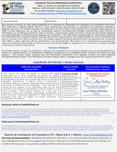 Copyright © 2026 by EstudioDeTitulo.net | 2026. All Rights Reserved. Website Design, Mobile Application Software & Intranet Portal Technologies is powered by Collazo IT Technologies, San Juan, Puerto Rico. Operated by Estudio de Título Puerto Rico. Queda estrictamente prohibida la reproducción total o parcial, distribución, modificación o uso no autorizado de este contenido sin el consentimiento previo y por escrito. Advertencia Legal: La información provista se obtiene mediante conexión a los sistemas digitales del Registro de la Propiedad de Puerto Rico. Al utilizar nuestros servicios, usted acepta nuestros términos y condiciones, y releva de toda responsabilidad a Estudio de Título Puerto Rico y a su personal. All content, structure, and digital systems are proprietary and protected under applicable intellectual property laws.